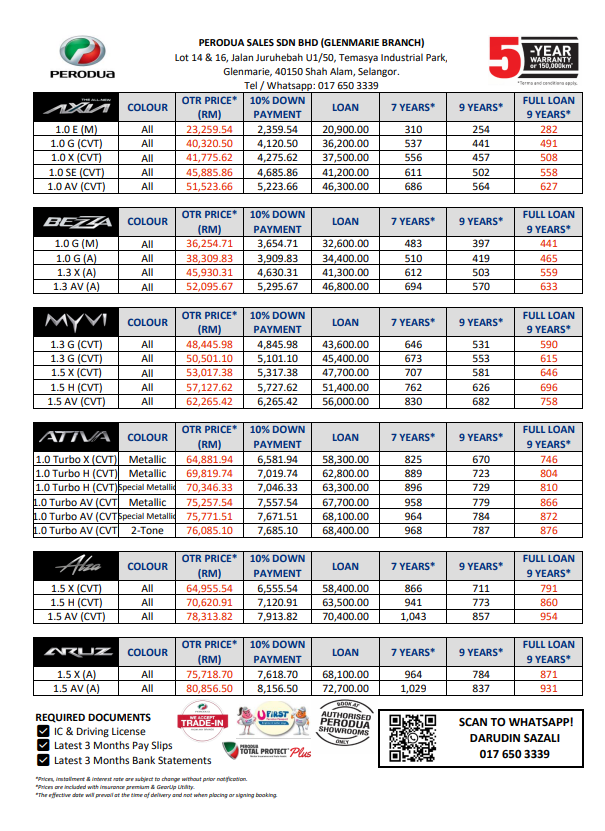 Hubungi saya sekarang untuk sebarang pertanyaan atau tempahan kereta Perodua baharu anda.